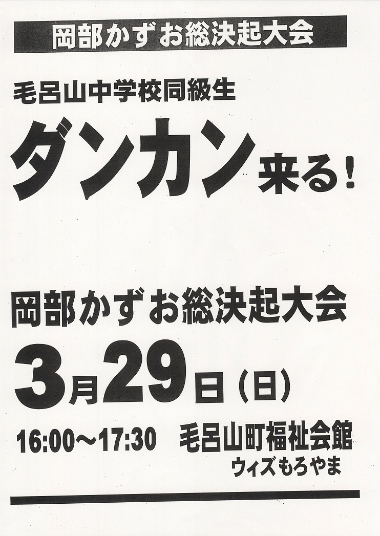つきましては、下記の通り岡部かずお「未来の毛呂山を語る会」を開催致します。